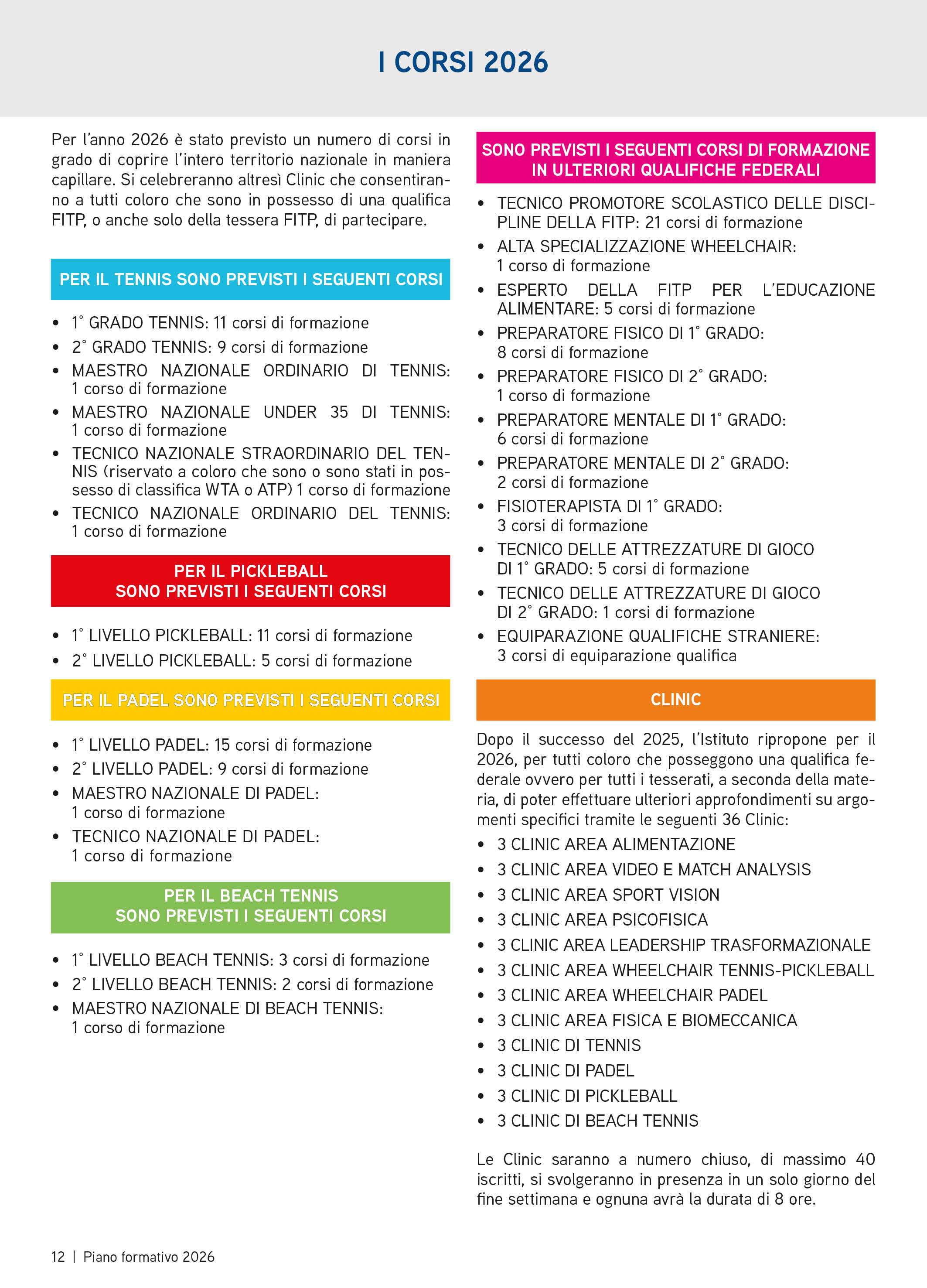“Con tutte le componenti tecniche, didattiche e organizzative – spiega il direttore Michelangelo Dell'Edera –, l’Istituto ha varato importanti novità nei piani di studio e nella bibliografia dei corsi, per renderli sempre più all’avanguardia rispetto a un modello di prestazione in continua crescita per tutti gli sport di racchetta. Dal tennis al padel, dal beach tennis alla nuova disciplina del pickleball e naturalmente al wheelchair, per uno sport sempre più inclusivo. Partendo dai trionfi ancora freschi in Davis e in Billie Jean King Cup, il concetto di squadra deve essere enfatizzato e portato all'interno di ogni circolo”.