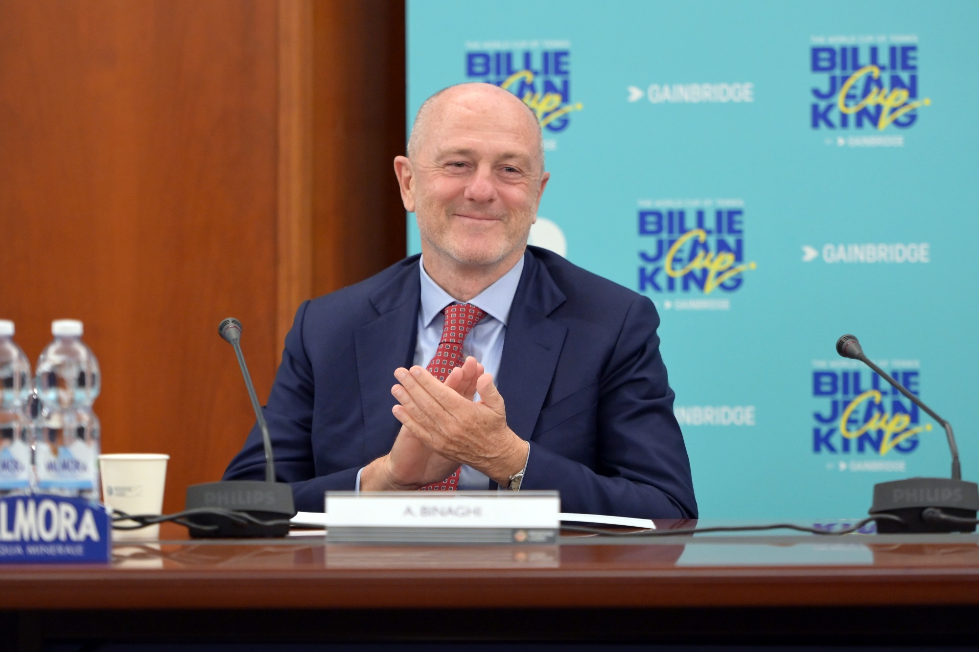 L'intervento di Angelo Binaghi, presidente della Federazione Italiana Tennis e Padel, alla conferenza stampa di presentazione del Qualifier di Billie Jean King Cup Italia-Giappone