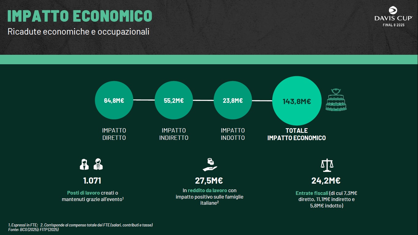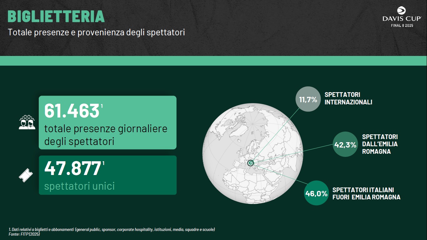 Ecco i dati sull'impatto economico e sociale mostrati durante la conferenza stampa conclusiva della Final 8 di Coppa Davis a Bologna