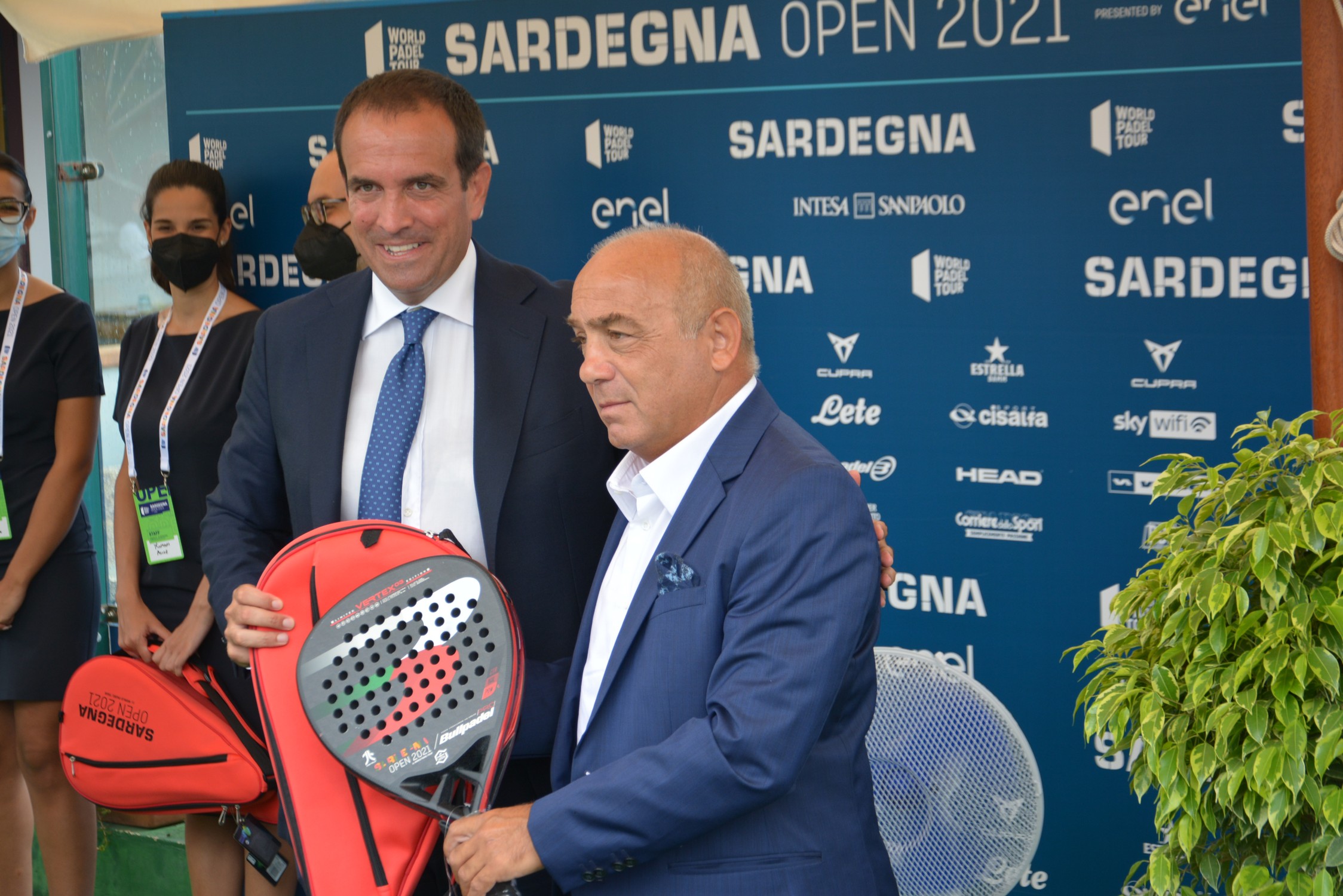 Il marchio Bull Padel ha voluto creare una edizione limitata di 1000 esemplari di una racchetta per il Sardegna Open 2021; la Sardegna piace al mondo del padel e alle aziende. Stiamo vedendo uno spettacolo bello ma da domani vedremo e vivremo tutti insieme uno spettacolo straordinario.