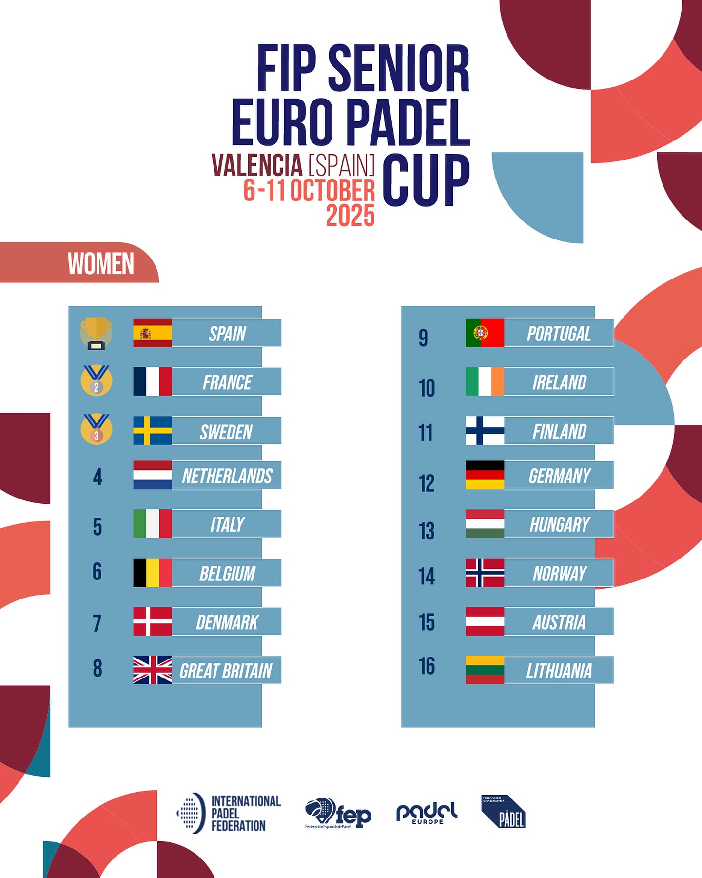 Un terzo posto che vale oro, a riscattare un quinto che invece lascia un po’ di amaro in bocca. Perché dalla nazionale femminile nell’edizione 2025 della FIP Senior Euro Padel Cup era lecito attendersi qualcosa in più, anche in virtù del bronzo mondiale dello scorso anno, ma in compenso è arrivato uno splendido risultato da parte della nostra selezione maschile, costretta ad arrendersi solo nei confronti della superpotenza Spagna, di nuovo vincitrice del titolo continentale sia nel maschile sia nel femminile (con la Francia battuta in ambedue le finali).