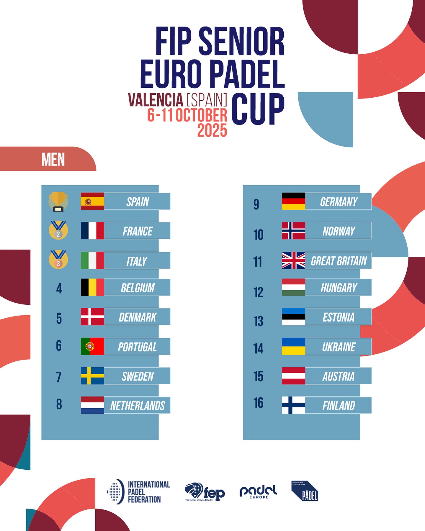 Terzo gradino del podio nella FIP Senior Euro Padel Cup per i nostri uomini, battuti soltanto dalla Spagna. Dal team femminile arriva invece un quinto posto. Sei medaglie per l’Italia negli Open delle varie categorie: oltre all’immancabile oro nell’over 55 di Serafino/Bartolini, anche due argenti e tre bronzi