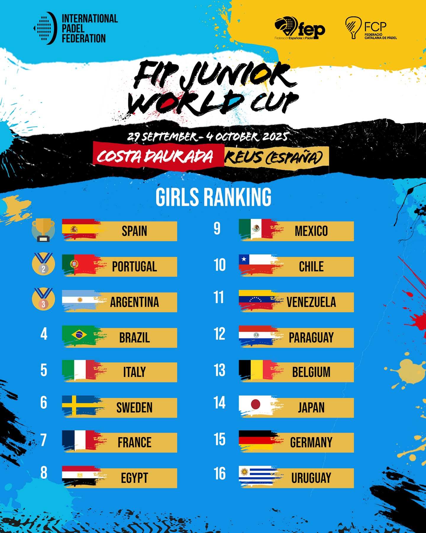 Un quinto posto nel femminile, un settimo posto nel maschile. È il bilancio finale della spedizione italiana a Reus, sede dell’edizione 2025 della FIP Junior World Cup, il mondiale giovanile di padel. Un risultato agguantato dagli azzurrini in Catalogna grazie a due vittorie nella giornata conclusiva, ottime per chiudere una competizione complessivamente positiva. È mancato l’acuto, come il bronzo al femminile di due anni prima in Paraguay, e specialmente dai ragazzi era lecito attendersi qualcosa di più, ma il livello del padel globale sta crescendo e anche le altre nazioni non stanno certo a guardare.