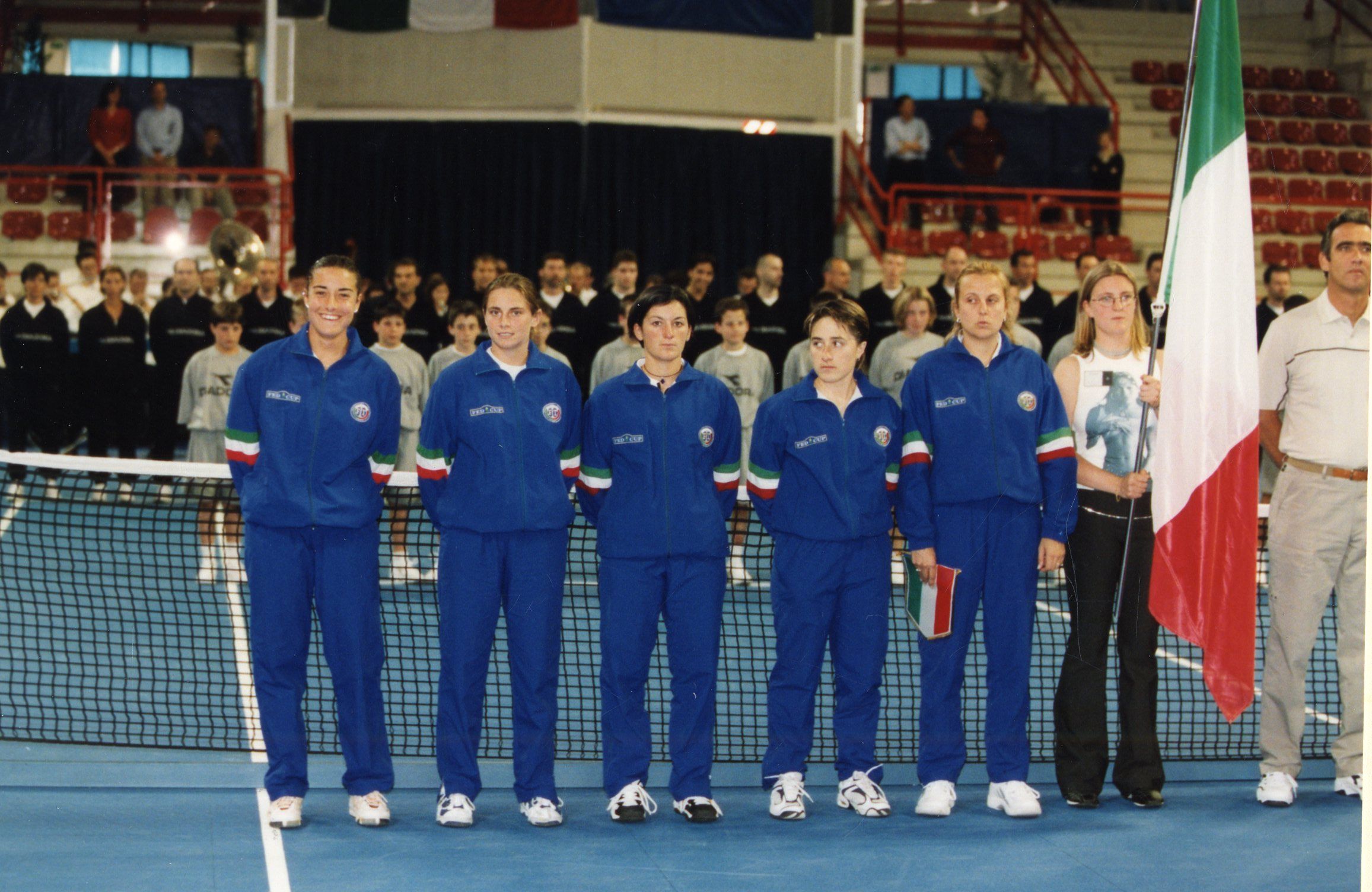Raffaella Reggi, capitano della squadra di Fed Cup nel 2001. Da sinistra, Giulia Casoni, Roberta Vinci, Adriana Serra Zanetti e Gloria Pizzichini
