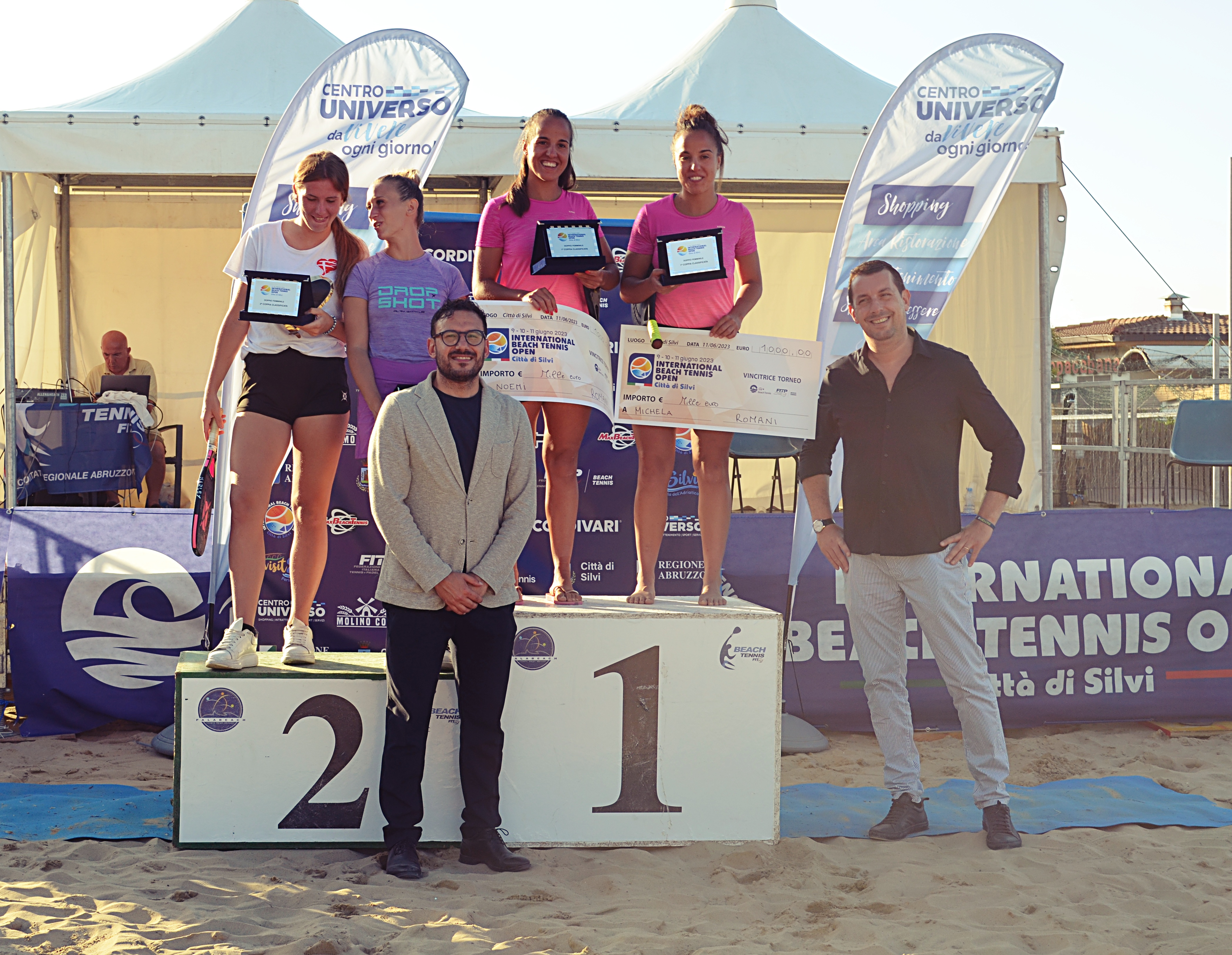 La finale femminile non ha tradito le aspettative e sotto rete sono andate le più quotate Francesconi/Giusti (1), e le gemelle Michela e Noemi Romani (2) dopo aver eliminato rispettivamente Kudinova/Renzi e Cini/Deiana.