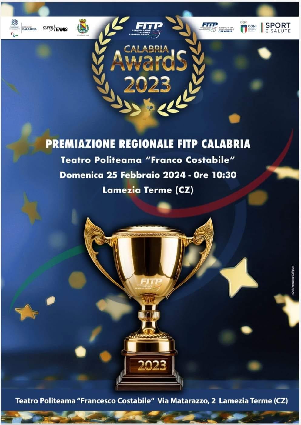 Il tennis ed il padel calabrese riprendono una tradizione interrotta a causa dell'emergenza pandemica. Si svolgerà, infatti, domenica prossima 25 febbraio, al Teatro Politeama "Franco Costabile" di Lamezia Terme, dalle ore 10.30, la cerimonia di premiazione organizzata dal comitato regionale calabro della Federazione Italiana Tennis e Padel. Nell'occasione la federazione calabrese premierà gli atleti e le squadre (sia di tennis che di padel) che hanno ottenuto i risultati migliori nel corso della stagione 2023.