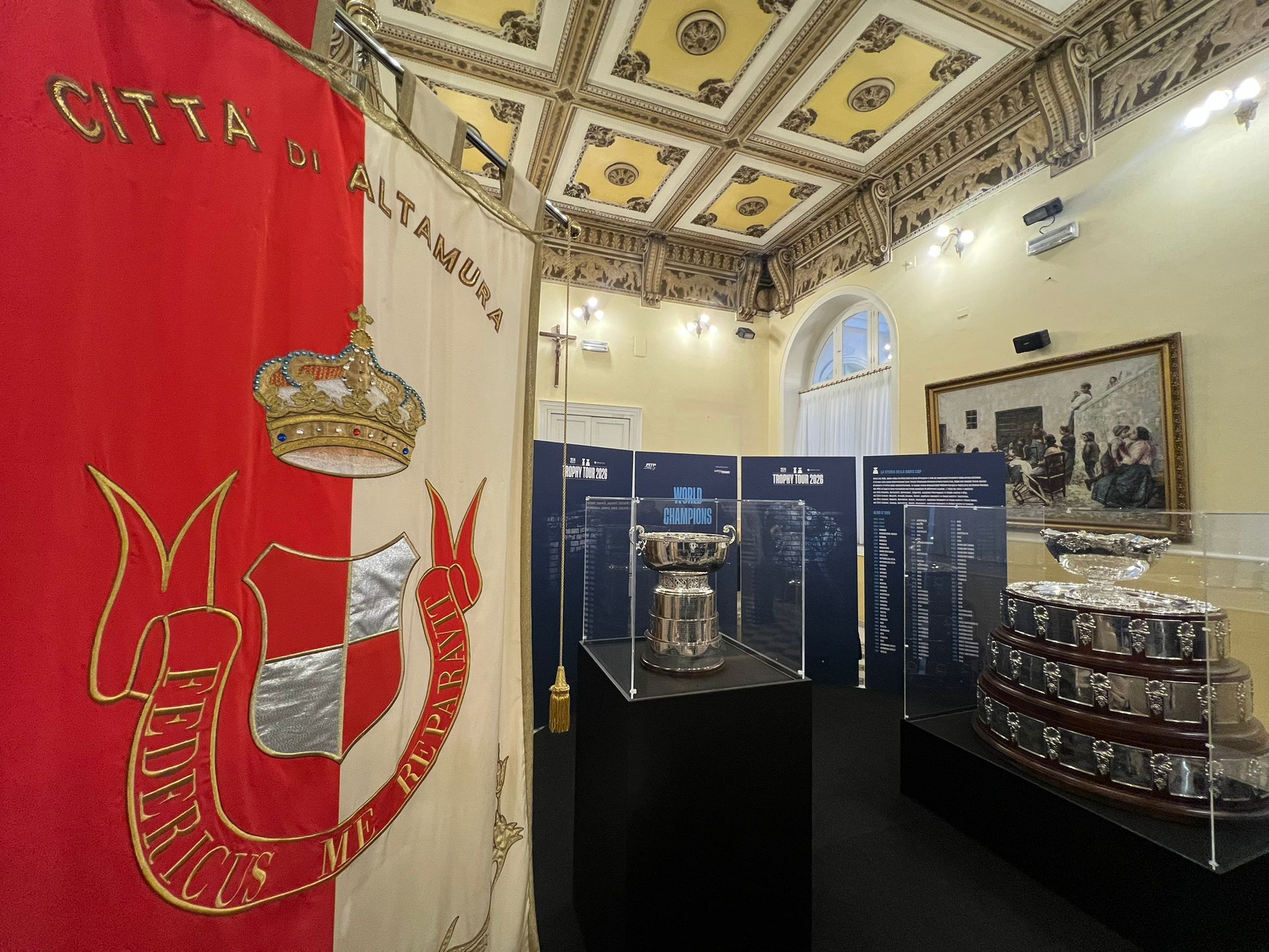 Celebrare i successi del “Sistema Italia” e guardare da vicino i trofei più ambiti del mondo del tennis. Il Trophy Tour 2026 arriva in Puglia: dopo aver fatto tappa a Bari, Barletta e Martina Franca negli ultimi due anni, gli iconici trofei sono in mostra ad Altamura. Coppa Davis e Billie Jean King Cup sono custoditi nella sala Laudati di Palazzo di città.