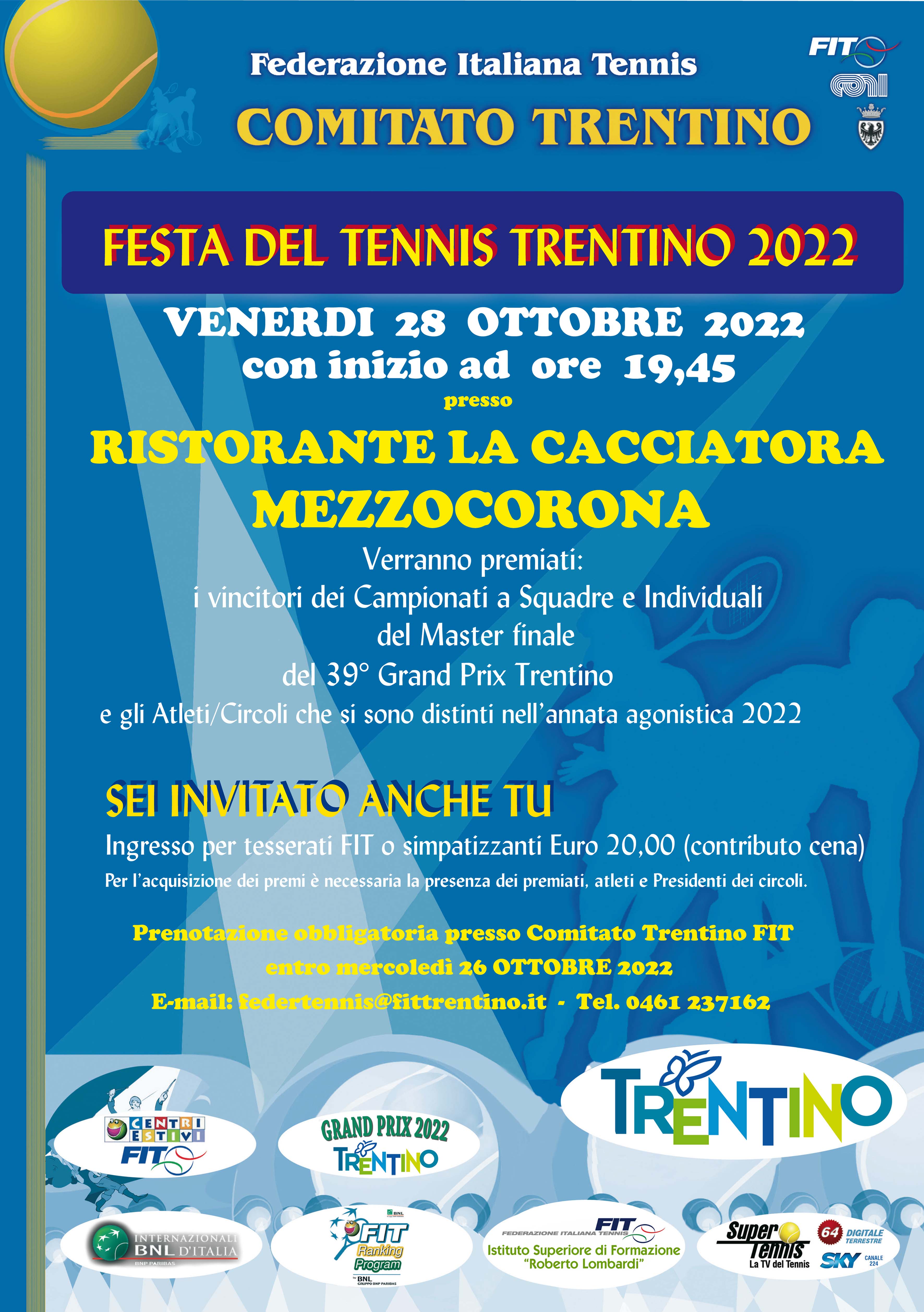 Il prossimo 28 ottobre 2022 è in programma la grande Festa del Tennis trentino, organizzata dal Comitato locale.