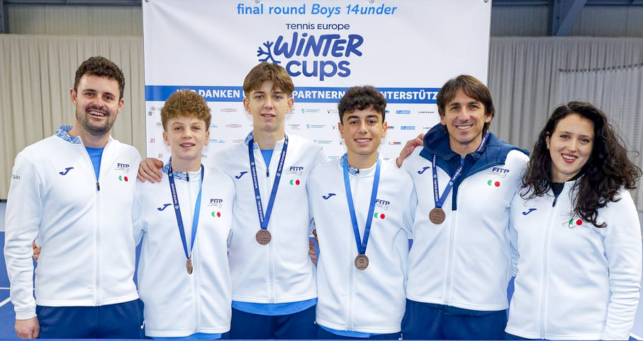 La nazionale italiana under 14 di tennis si è classificata al terzo posto alle finals della Dunlop Winter Cup tenutesi a Niederzier in Germania a fine febbraio. Dopo aver raggiunto il primo posto nel raggruppamento a otto nazioni tenutosi ad Altamura, il team Italia guidato da Tomas Tenconi ha raggiunto con merito il gradino più basso del podio.