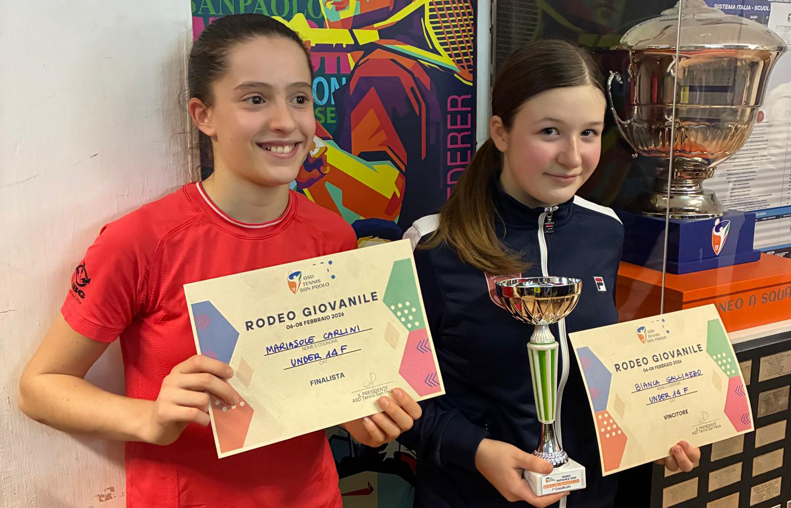 Under 14 femminile: Bianca Galliazzo (Pana.ma) b. Mariasole Carlini (Canottieri Padova) 42 35 7/4; Anita Lo Russo (Tennis San Paolo) e Greta Torcelli (Tennis San Paolo).